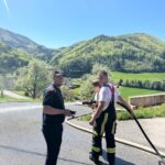 Am nächsten Tag herrschte perfektes Wetter für die Praxis. Die Teilnehmerinnen und Teilnehmer wurden in mehrere Gruppen aufgeteilt, um alle Inhalte möglichst genau durchzugehen und ausreichend Zeit für Fragen zu schaffen. An mehreren Stationen konnten gemeinsam mit erfahrenen Ausbildern die Geräte der Feuerwehrfahrzeuge getestet und im Betrieb beobachtet werden.
