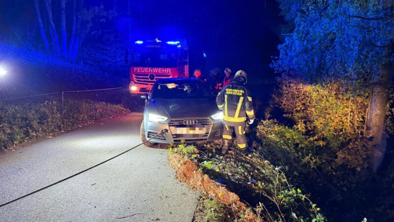 Mit den Seilwinden der beiden Feuerwehren konnte das Auto schließlich sicher und ohne weitere Schäden wieder auf die Straße gezogen werden.