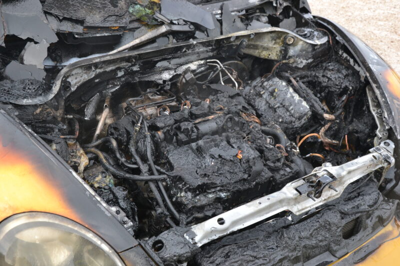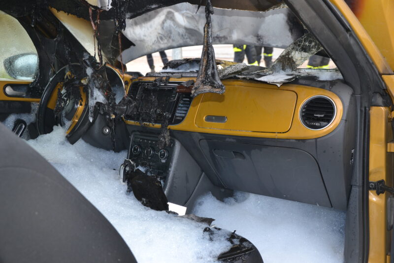 Vom Motorraum aus dürfte das Feuer entstanden sein und sich teilweise bereits in das Fahrzeuginnere ausgebreitet haben. Die genaue Brandursache ist jedoch unklar und Gegenstand polizeilicher Ermittlungen.